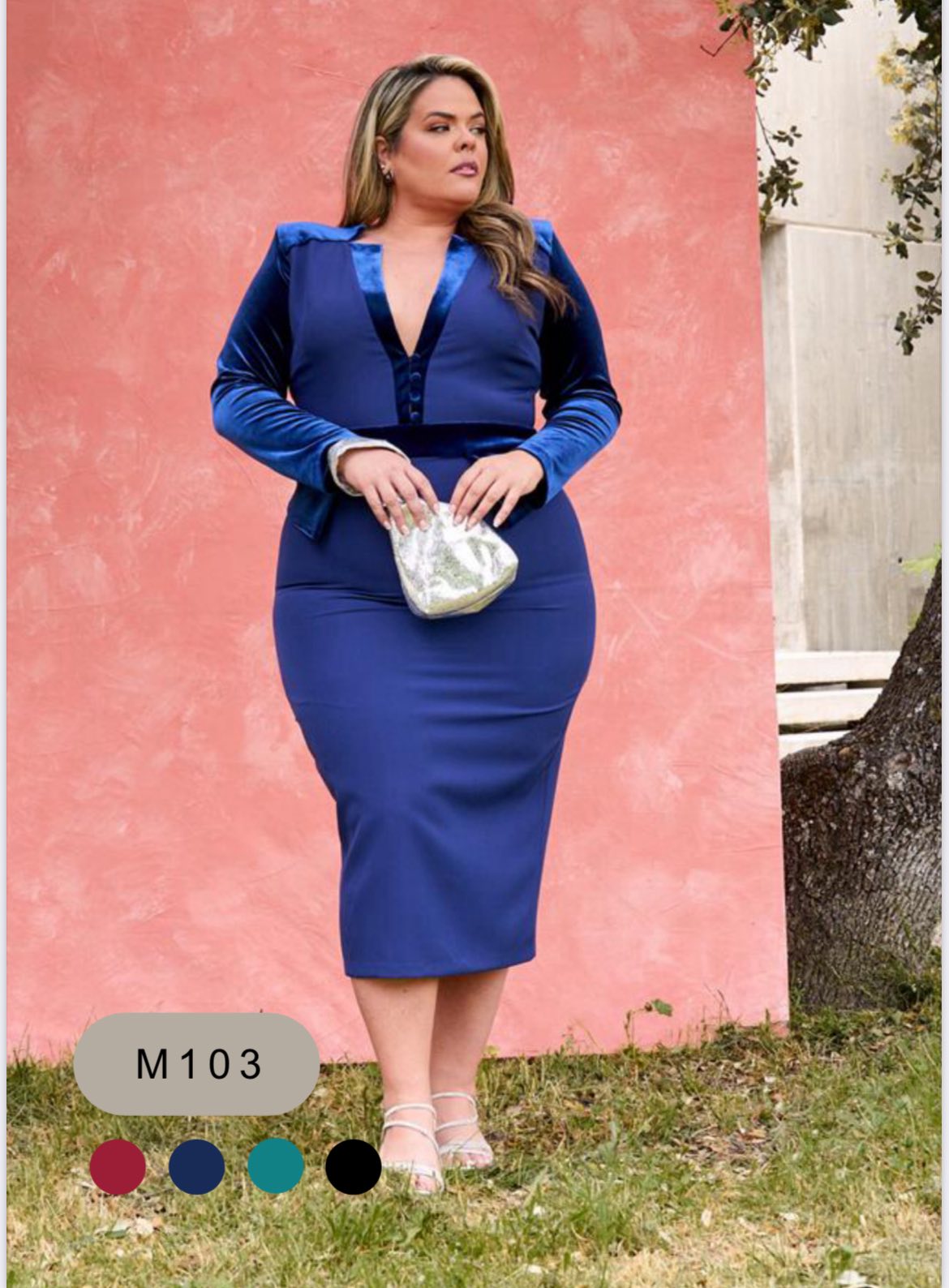 Vestido midi confeccionado en tejido de crepe con manga larga ,con tapetas y contrastes en terciopelo. La parte de la falda es de corte recto midi .Va forrado y tiene cremallera invisible trasera.