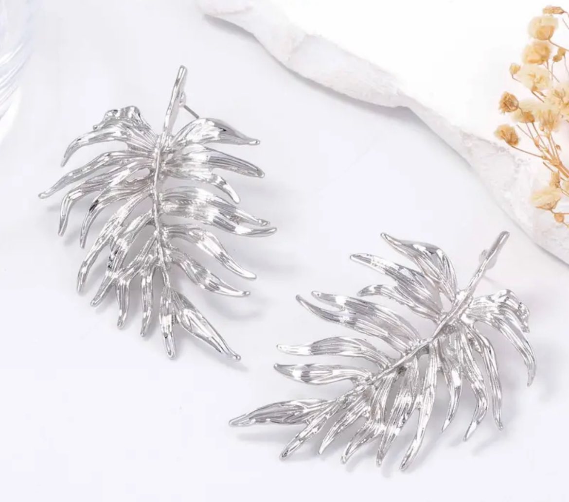 Pendientes en forma de hoja plateados.